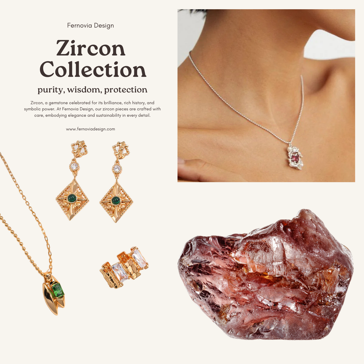 Zircon, a gemstone celebrated for its brilliance, rich history, and symbolic power. Our zircon pieces are crafted with care, embodying elegance and sustainability in every detail.