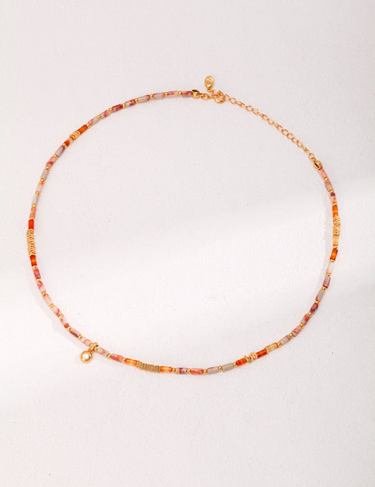 Maple and Ginkgo Leaf Agate Zircon Necklace