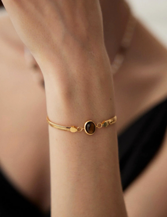 Tiger's Eye, a gemstone celebrated for its grounding energy and shimmering beauty. Our sustainably sourced Tiger Eye pieces combine timeless elegance with the natural power of this storied stone.