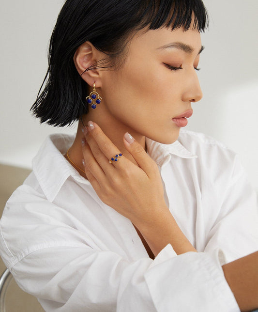 Minimalist Blue Lapis lazuli Open Ring