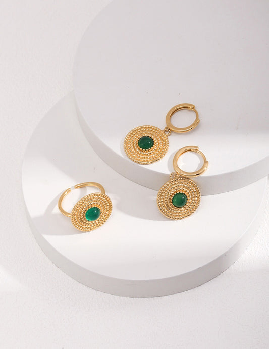 Natürlicher grüner Aventurin mit Perlenohrringen