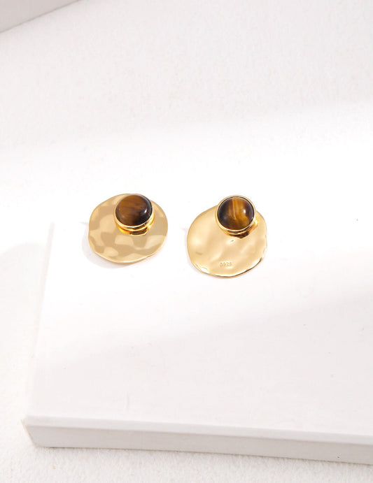 Abnehmbare runde Ohrringe mit Tigerauge-Edelstein