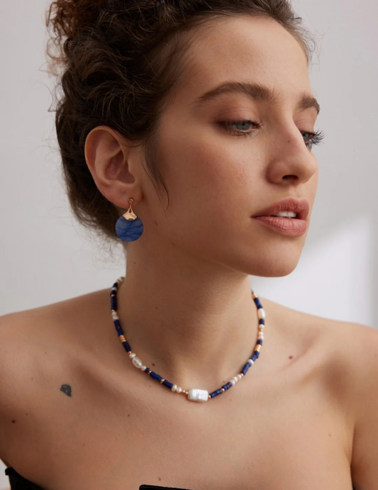 Blaue Lapislazuli-Süßwasserperlen-Ohrringe