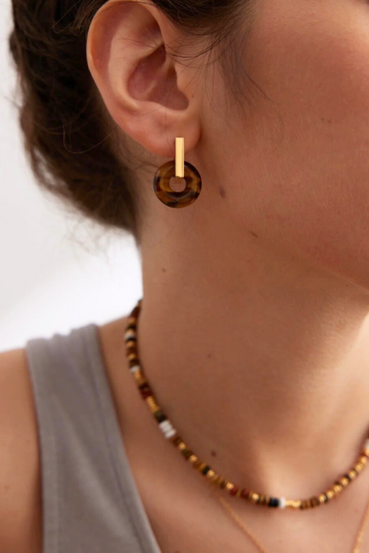 Runde Ohrringe mit braunen Perlen aus Kunstharz
