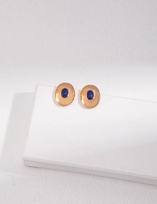 Natürliche ovale Ohrstecker aus Lapislazuli/Obsidian