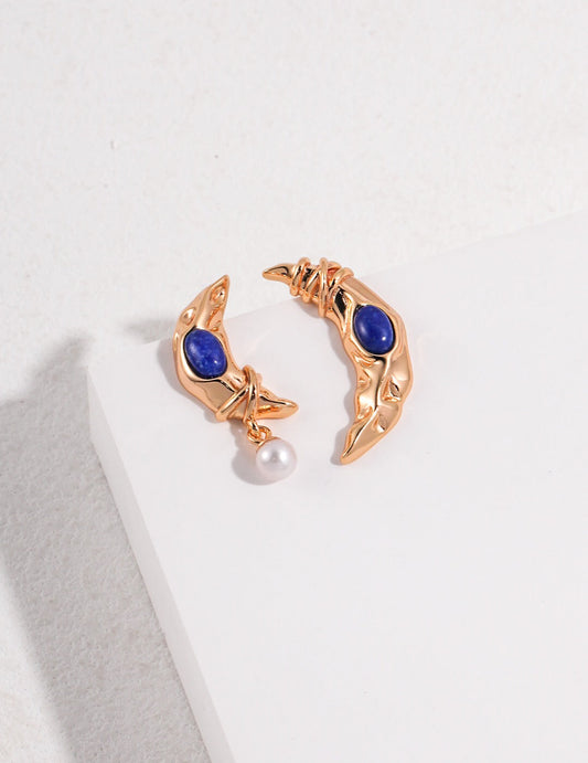 Lapislazuli-Halbmond-Perlenohrringe