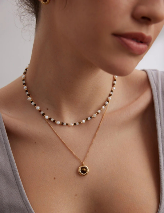 Tiger Eye / Black Onyx Round Pendant Necklace