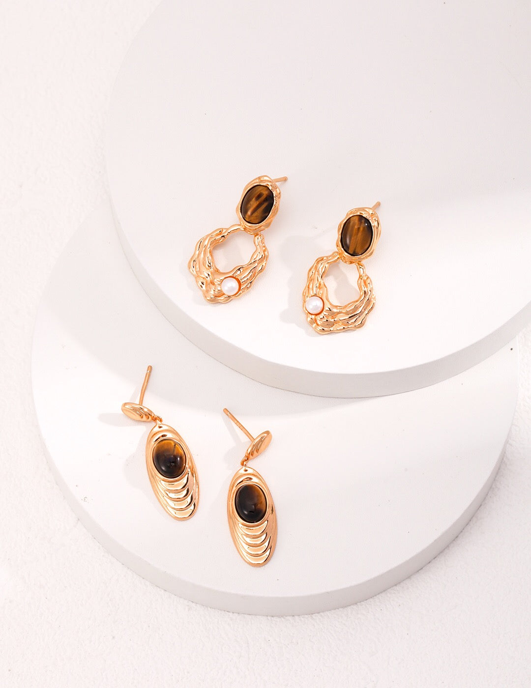 Hochwertige Materialien : Tigerauge-Stein , 18 Karat Gold Vermeil.
