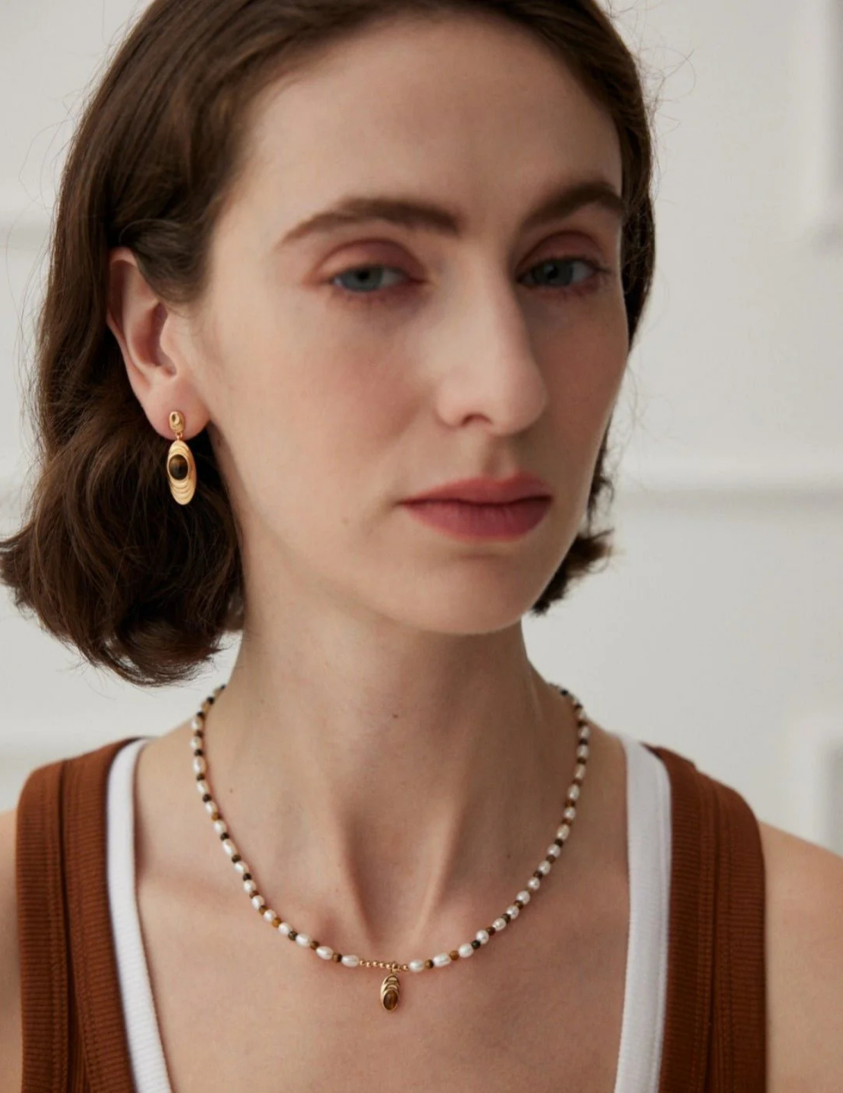 Schwarzer Onyx, ein Edelstein, der Stärke und Eleganz symbolisiert und seine Wurzeln in der antiken Kultur hat. Unsere nachhaltig gewonnenen Stücke aus schwarzem Onyx ehren das reiche Erbe dieses Steins und bieten moderne Eleganz mit ethischer Handwerkskunst.