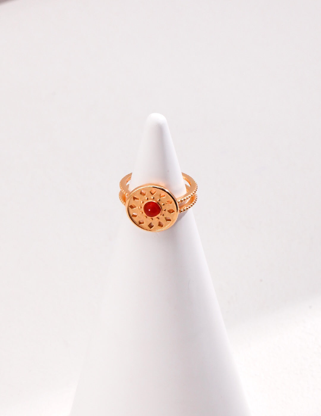 Hochwertige Materialien : Roter Achat, Gold Vermeil (18 Karat vergoldet auf Sterlingsilber).