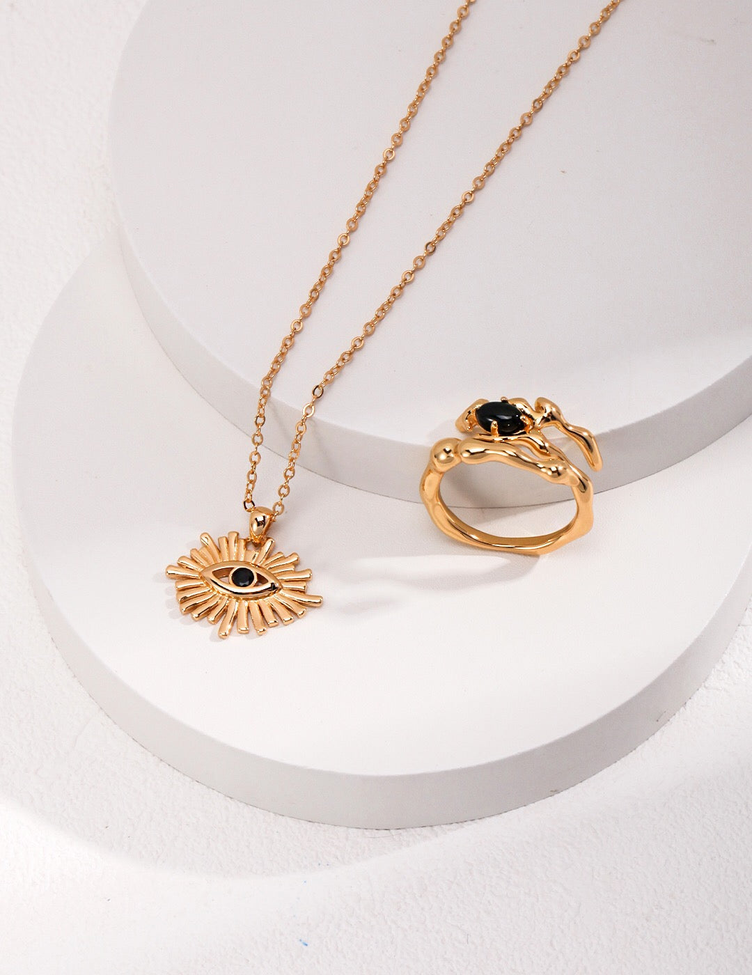 Schwarzer Onyx, ein Edelstein, der Stärke und Eleganz symbolisiert und seine Wurzeln in der antiken Kultur hat. Unsere nachhaltig gewonnenen Stücke aus schwarzem Onyx ehren das reiche Erbe dieses Steins und bieten moderne Eleganz mit ethischer Handwerkskunst.