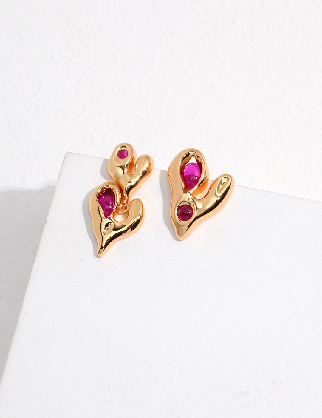Ohrstecker mit unregelmäßigem Herz aus rosa Zirkonia