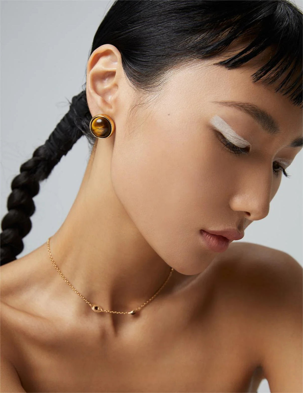 Ohrstecker aus natürlichem, rundem Tigerauge-Stein