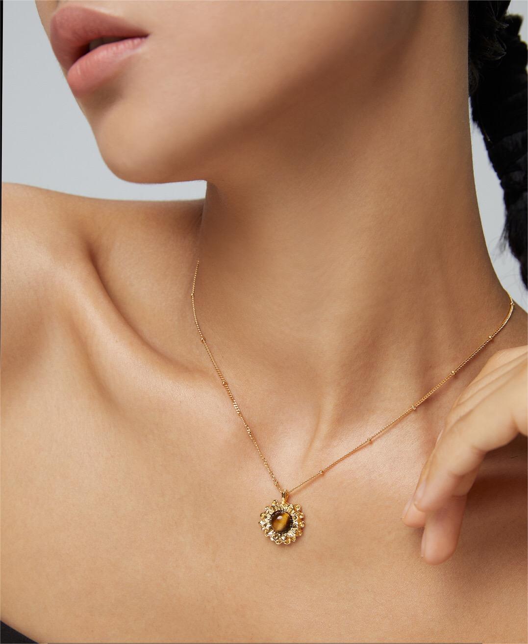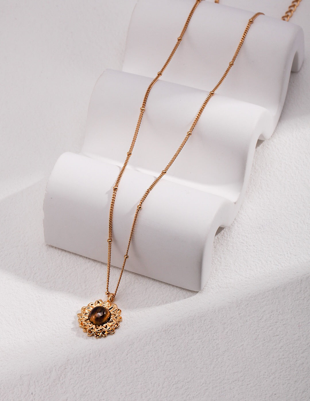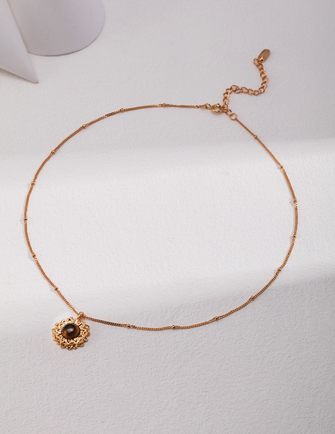 Halskette mit Anhänger aus Tigerauge-Stein im Sonnenblumen-Stil