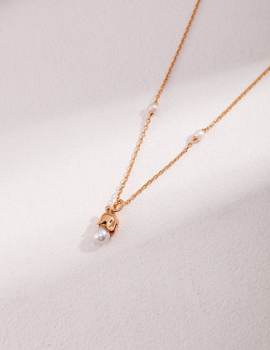 Collier avec pendentif en perles baroques et perles en or et zircon