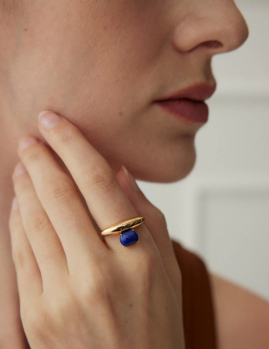 Bague ouverte minimaliste en lapis-lazuli bleu