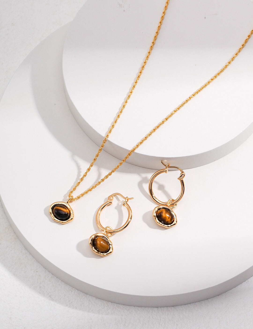 Premium Materials: Tiger's Eye Gemstone, Gold Vermeil (18ct gold plated on sterling silver).