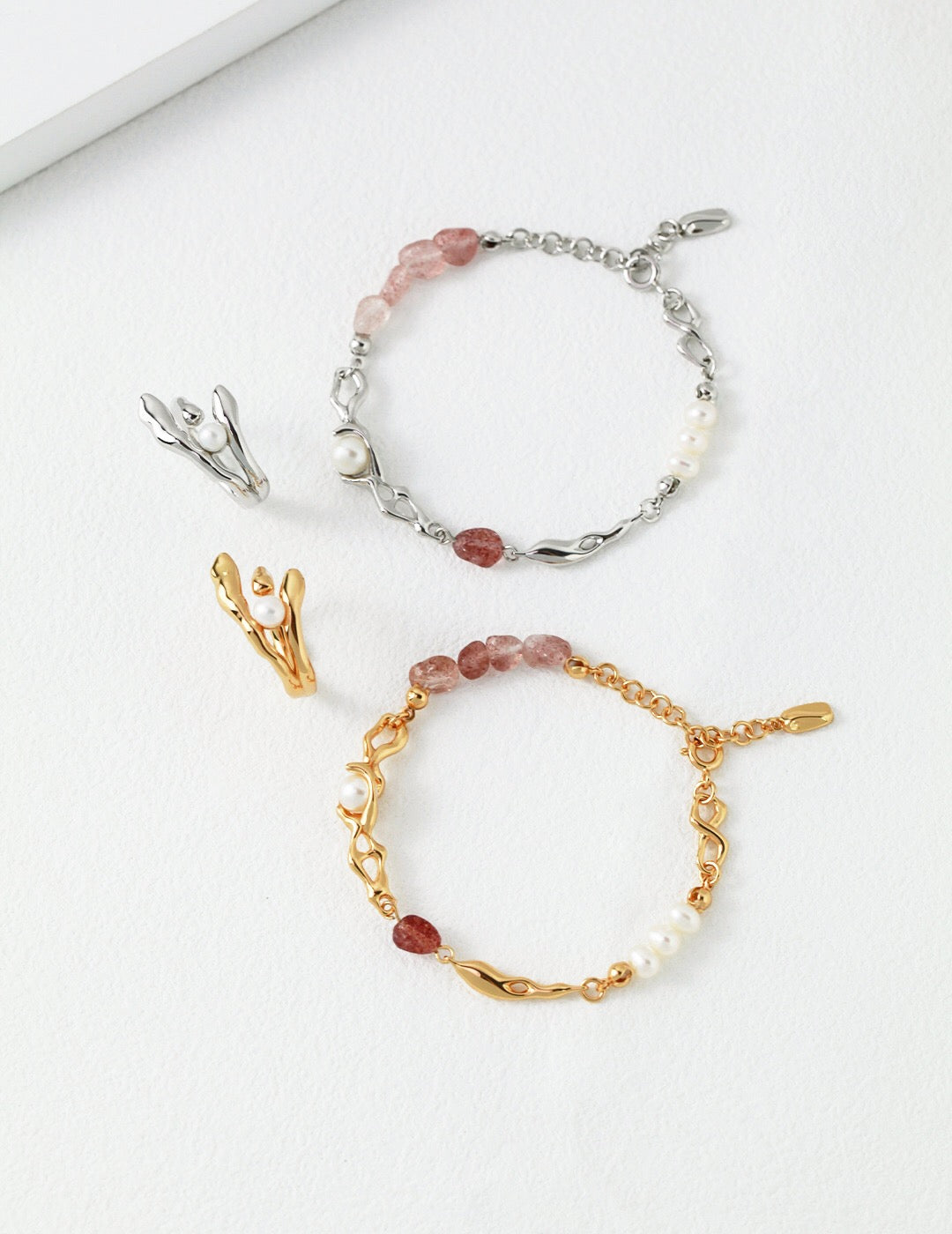Pink Strawberry Crystal Quartz Pearl Bracelet